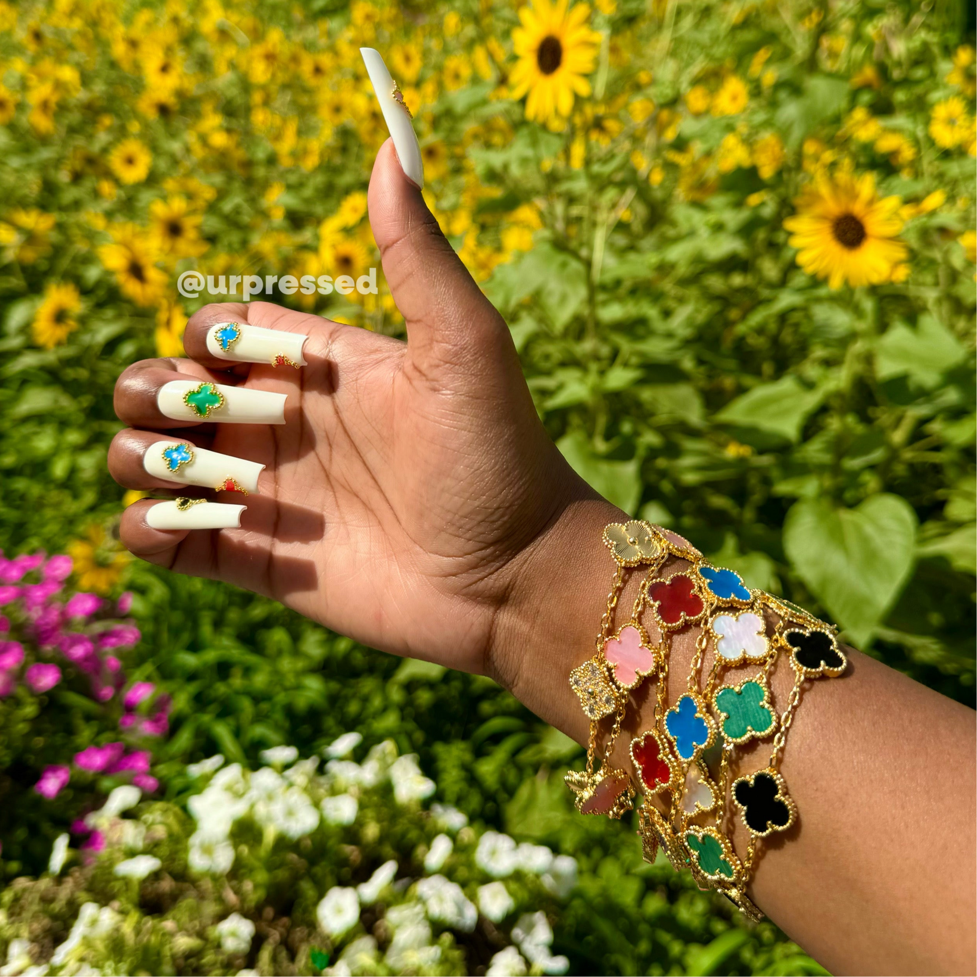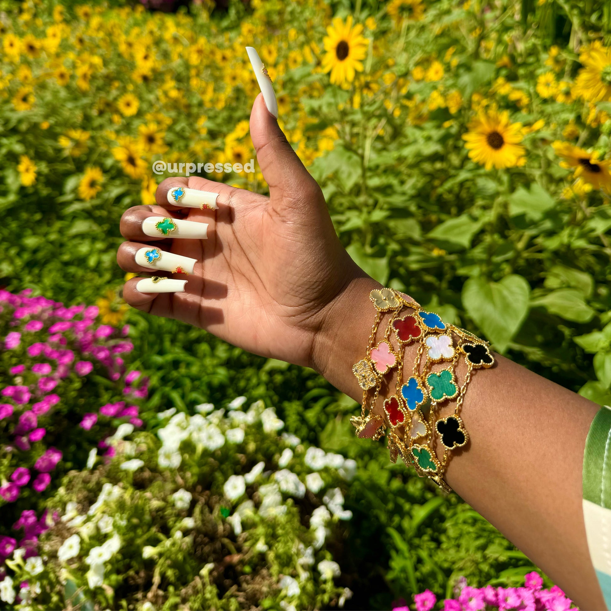 Experience the timeless elegance of Lucky Me, inspired by the renowned Van Cleef jewelry. This stunning piece features a charming clover design in a variety of vibrant colors. Elevate your style with this sophisticated and versatile accessory.